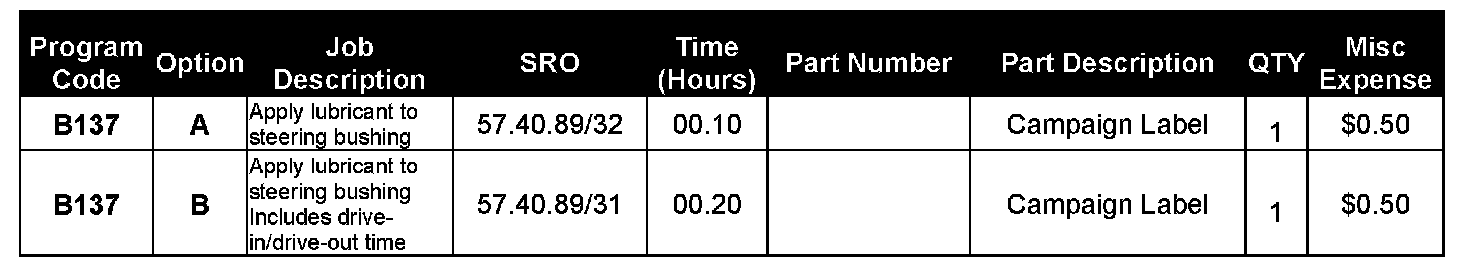 Warranty claims should be submitted quoting program code B137 together with the option code. This will result in payment of stated time and where applicable parts/miscellaneous expense.