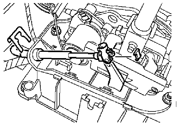2. Position selector cable through bracket and selector lever and secure selector cable to bracket.
