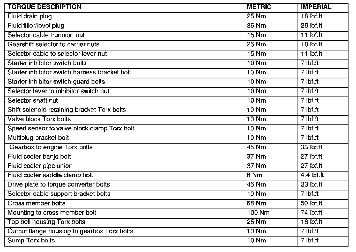 Torque Wrench Settings