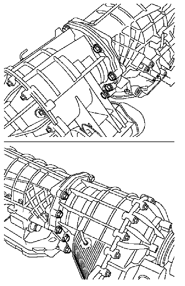 6. Align transfer gearbox to automatic gearbox, fit Torx bolts and tighten to 43 Nm (32 ft. lbs.).