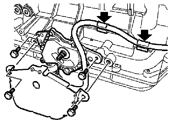 7. Remove 2 bolts securing inhibitor switch guard and remove guard.