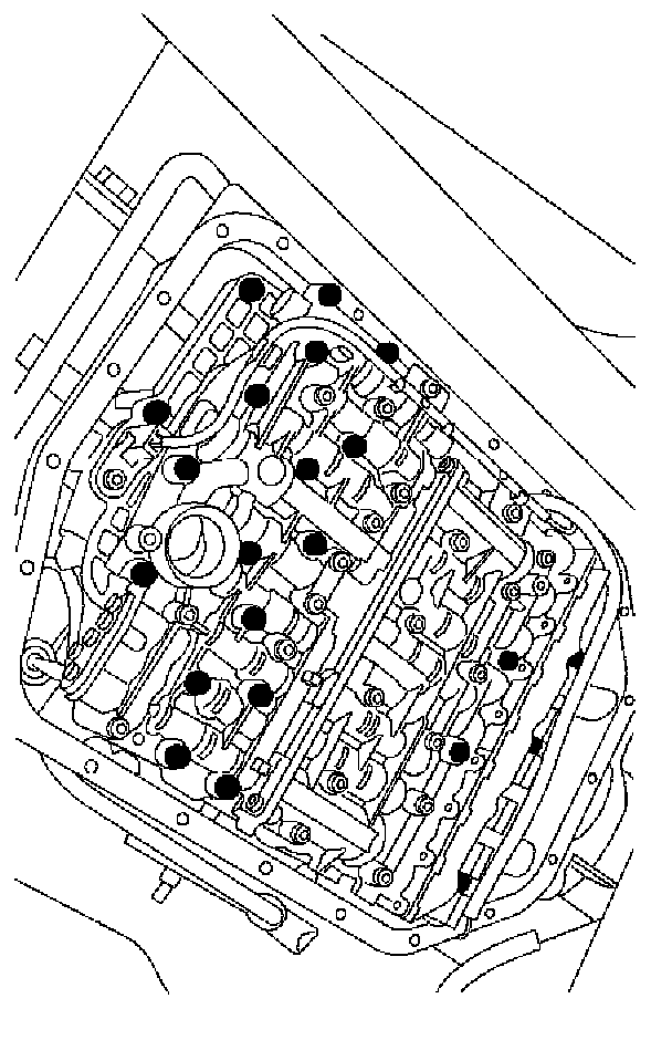5. Evenly and progressively loosen and remove 22 large shouldered Torx bolts from valve block.