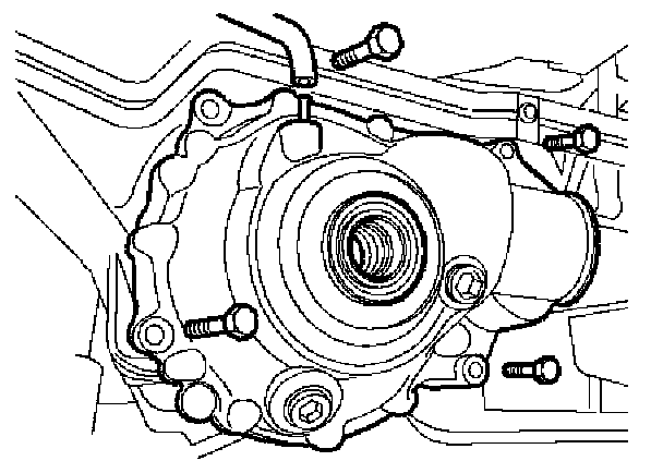 22. Remove 4 bolts securing differential and with assistance, remove differential. Remove and discard "O" ring.