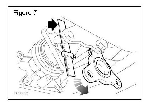 7. Position the alignment tool (Arrowed in Figure 7) into the locating bushing in the transfer gearbox front output flange.
