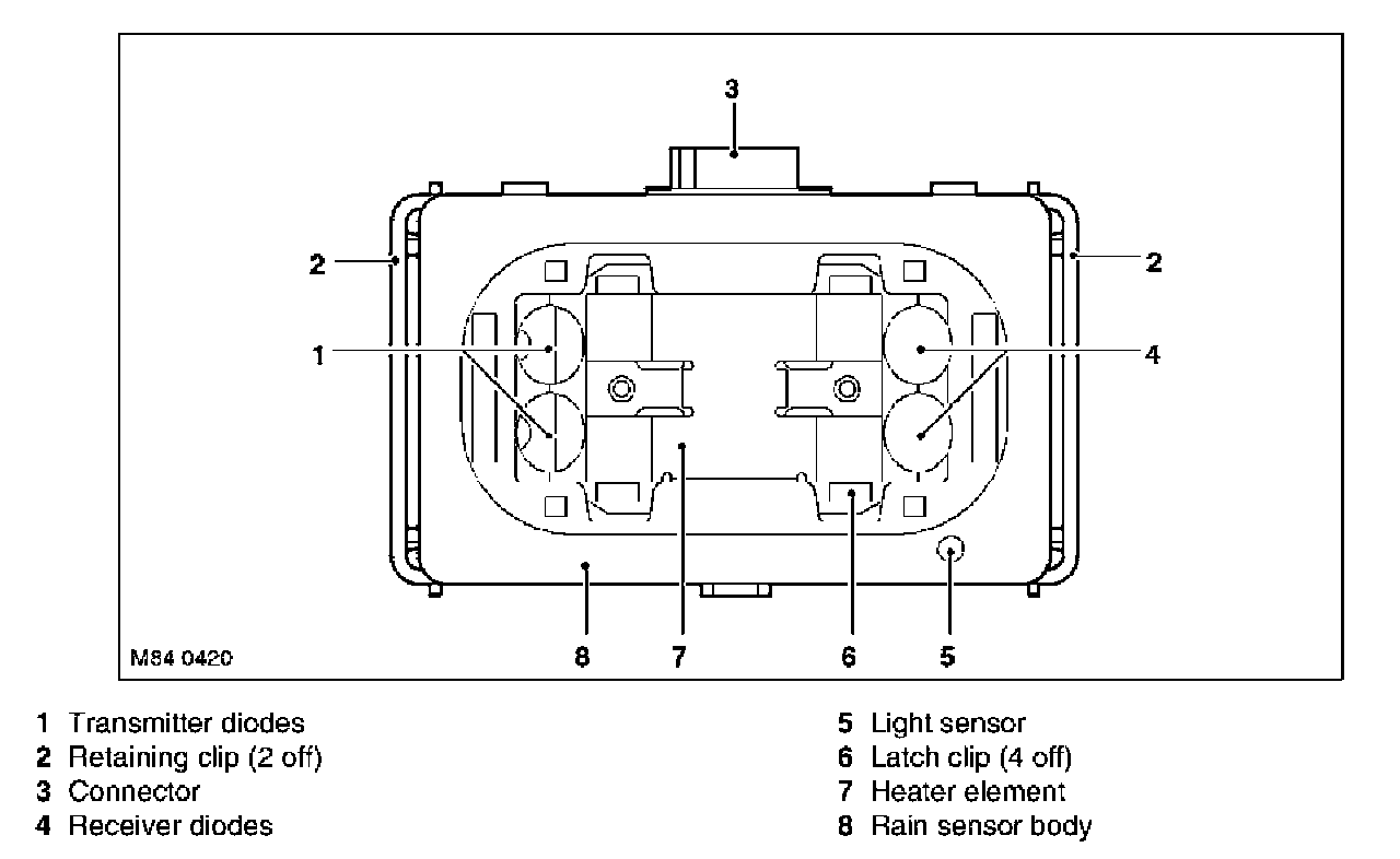 The rain sensor is located at the upper edge of the windscreen behind the interior rear view mirror. The sensor is mounted on an optical unit which is heat bonded to the inner surface of the windscreen during manufacture. If damage occurs to the optical unit or the windscreen, then a new windscreen will be required and fitment can only be performed by an authorised Land Rover dealer.