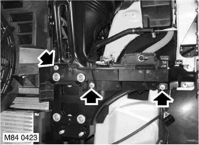 5. Remove 3 bolts securing bumper support bracket and remove bracket.
