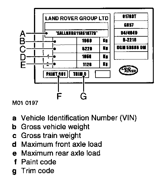 The Vehicle Identification Number (VIN) plate is stamped on a plate attached to the LH 'B' post. The VIN is also stamped in the following locations: