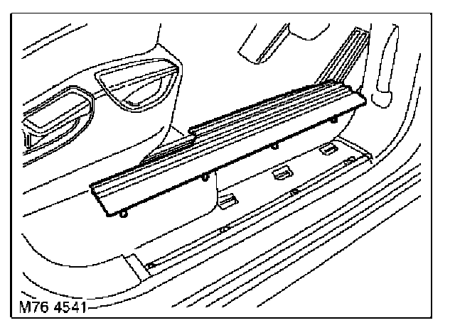 1. Using a trim removal tool, release 7 clips securing treadplate carpet retainer to sill.