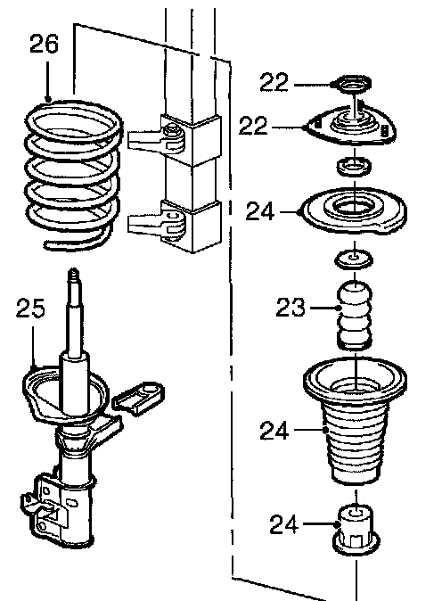 CAUTION: Note alignment of top mounting, spring and damper dust cover.