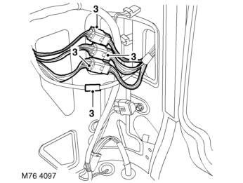 3. Release and disconnect 3 multiplugs and rear washer tube from lower 'E' post.