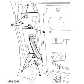 5. Release door harness sheath from 'E' post and pull harness through 'E' post.