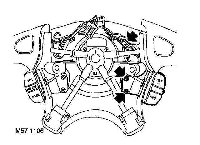 2. Release cruise control switch leads from clip and disconnect multiplug.