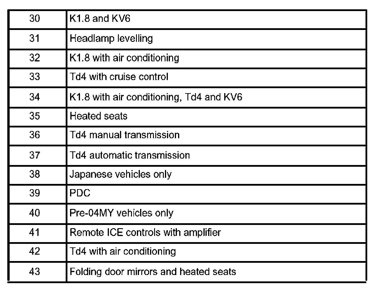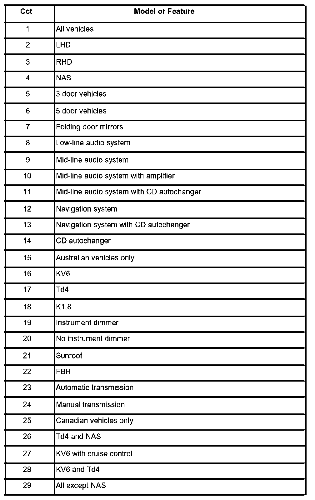 The following table lists the circuit reference numbers against a description of the model or feature to which they apply.