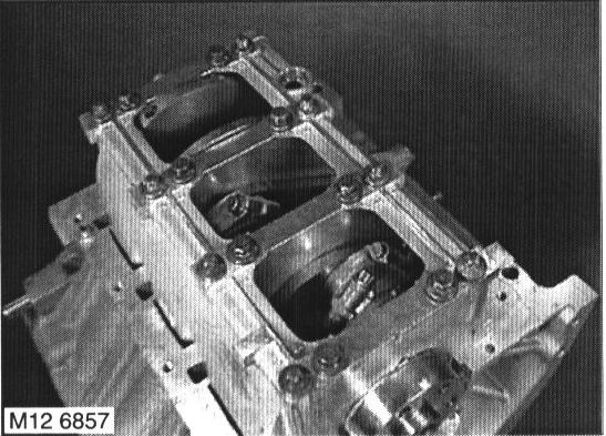 12. Remove 9 M8 bolts and 2 M6 bolts securing lower crankcase to cylinder block, release and remove lower crankcase.