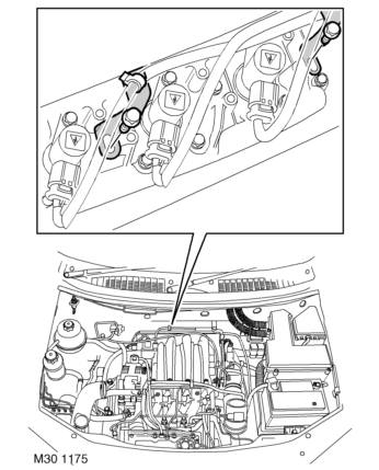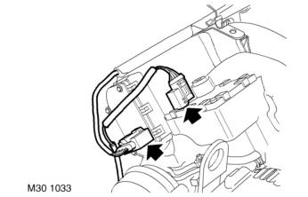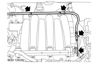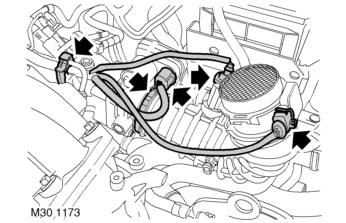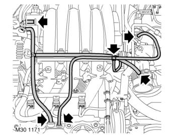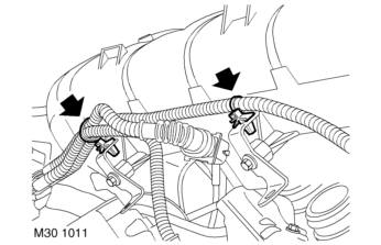 29. Release 2 clips securing RH plug top coil harness to inlet manifold chamber support brackets.