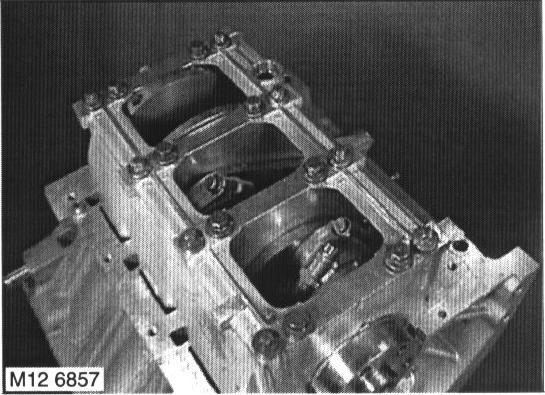 10. Remove 9 M8 bolts and 2 M6 bolts securing lower crankcase to cylinder block, release and remove lower crankcase.