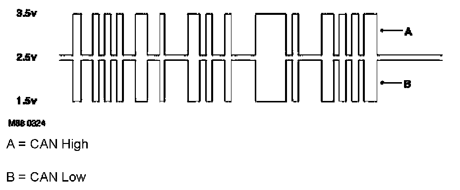 CAN messages consist of a signal which is simultaneously transmitted, in opposite phase, on both wires. CAN L switches between 2.5 and 1.5 volts, while CAN H switches between 2.5 and 3.5 volts. This causes a potential difference between the two lines to switch between 0 volt (logic 1) and 2 volts (logic 0) to produce the digital signal message.