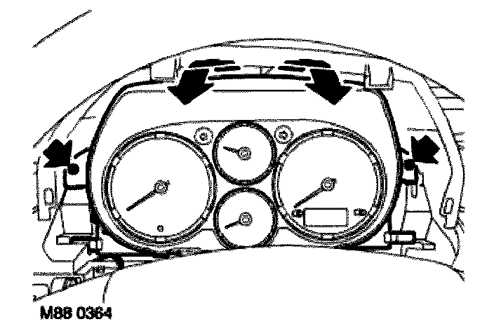 2. Remove 2 screws securing instrument pack to fascia, release pack from lower mounting lugs and move aside.