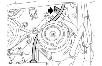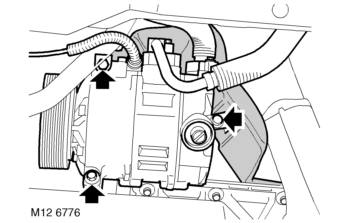 27. Position A/C compressor to front mounting plate and cylinder block, align heat shield, fit and tighten bolts to 25 Nm (18 lbf.ft).