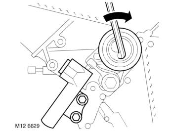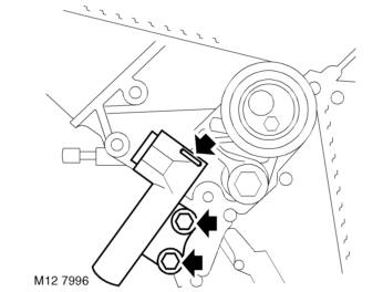 11. With assistance, position tensioner, fit new Patchlok bolts and tighten to 25 Nm (18 lbf ft).