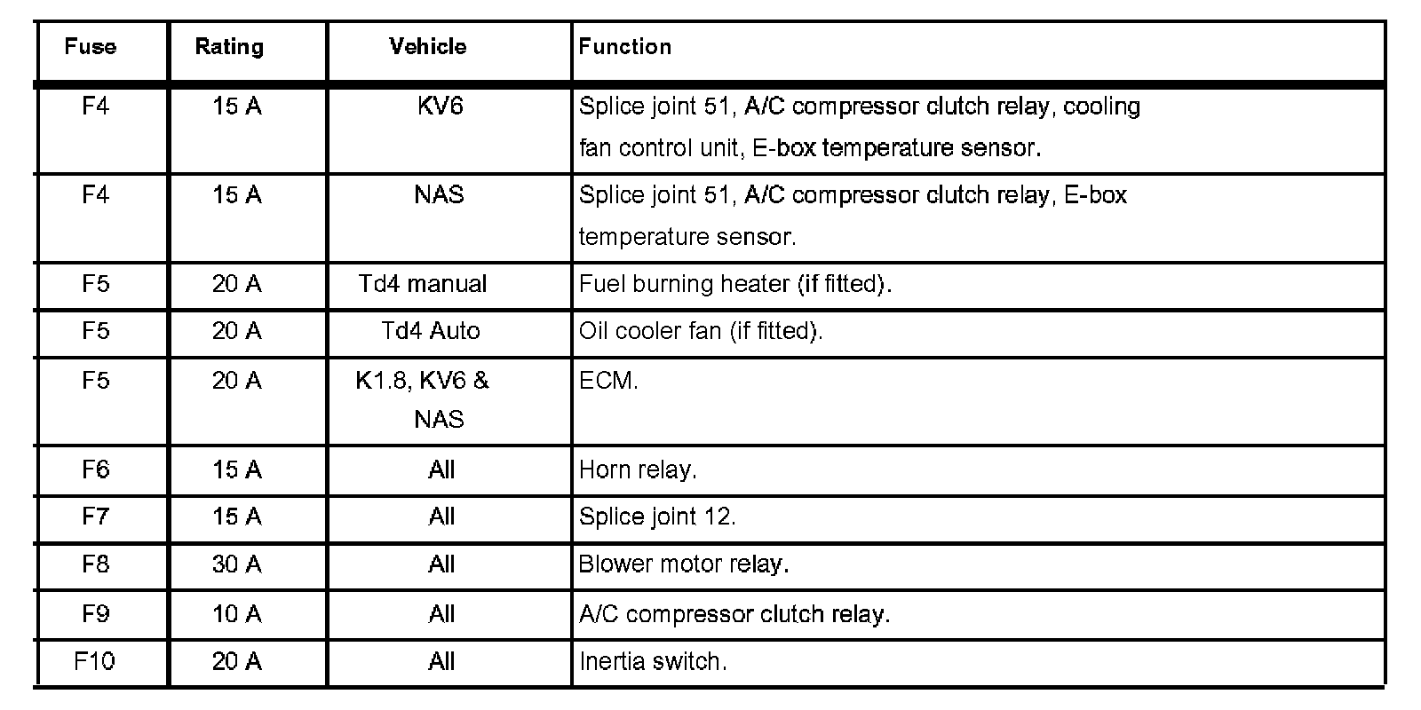 Fuses (F4 - F10):