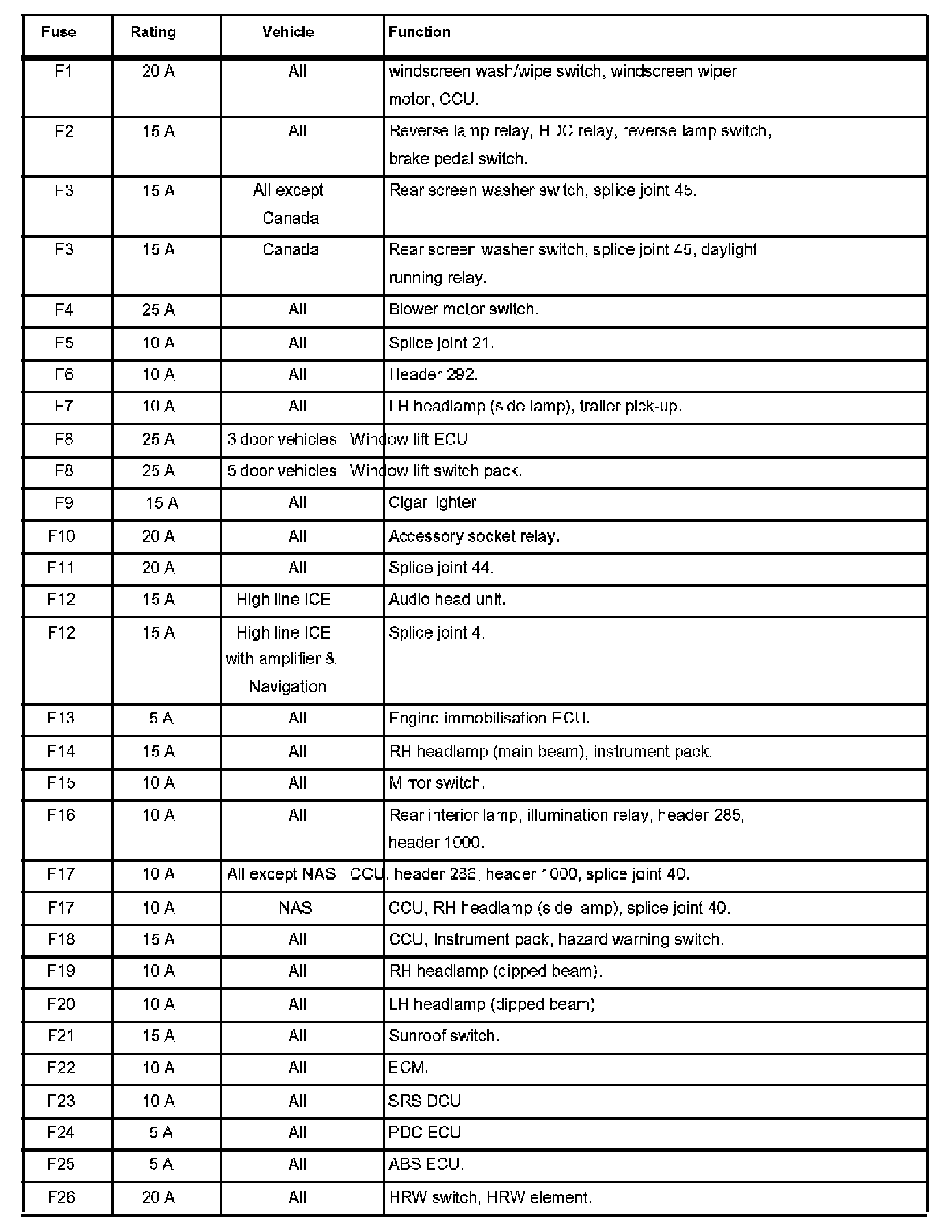 Fuses (F1 - F26):