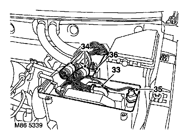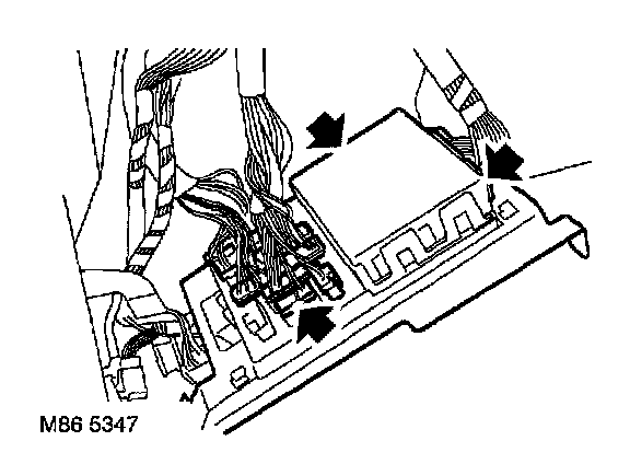 53. Release fuse box, disconnect 11 multiplugs and remove fuse box.