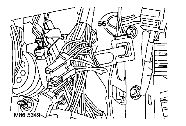 42. Release 2 fixings securing harness to LH side of engine bay.