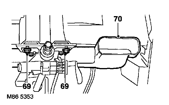 69. Remove 4 nuts securing steering column to bracket and lower column.
