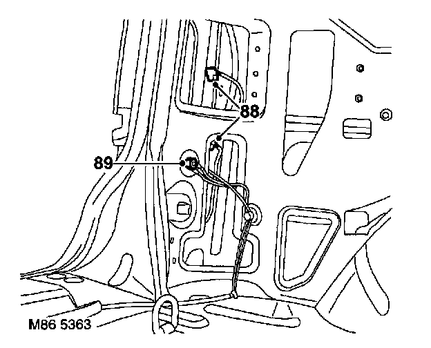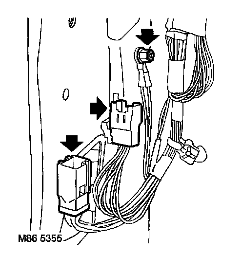 92. Release main harness retaining clips and pull harness into vehicle interior.