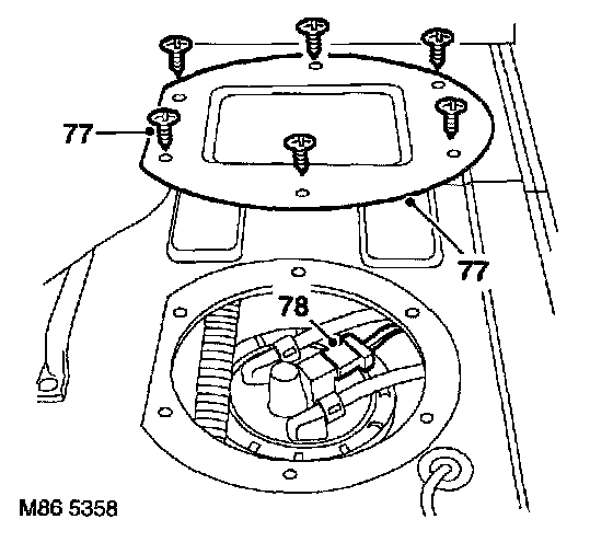 77. Remove 6 screws from fuel pump access cover and remove cover.
