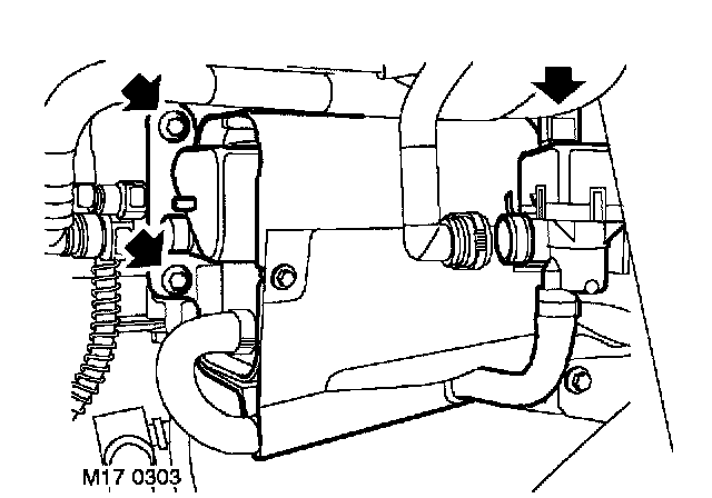 4. Remove 2 bolts securing canister support bracket and release assembly from mounting.