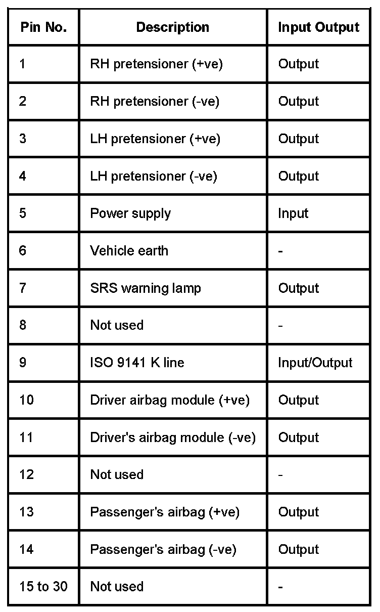 Airbag DCU Connector Pin Details (Up To 2002 MY)