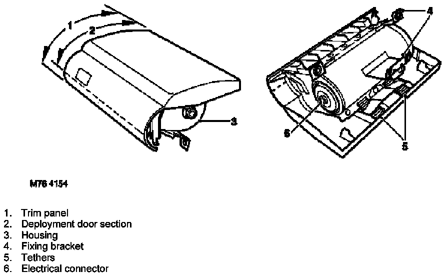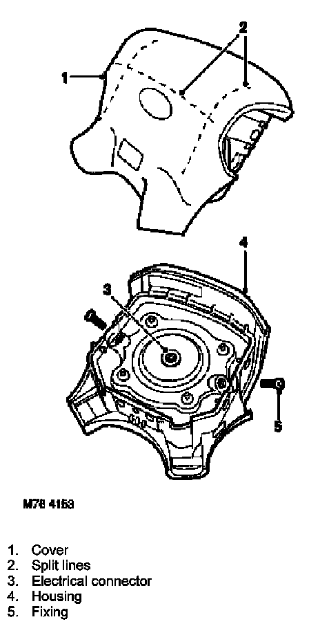 On the driver's airbag module, the housing is closed by a cover that forms the steering wheel centre pad; split lines are formed in the inner surface of the cover to direct the airbag through the required exit point during deployment. On the passenger's airbag module, the housing is closed by a trim panel profiled to match the fascia; a tethered deployment door forms an integral part of the trim panel.