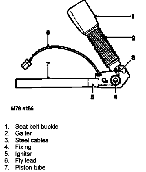 On receipt of a fire signal from the airbag DCU, the igniter ignites the propellant. The burning propellant rapidly produces nitrogen gas that drives the piston along the tube, pulling on the cables and drawing the buckle towards the buckle assembly fixing point on the seat.