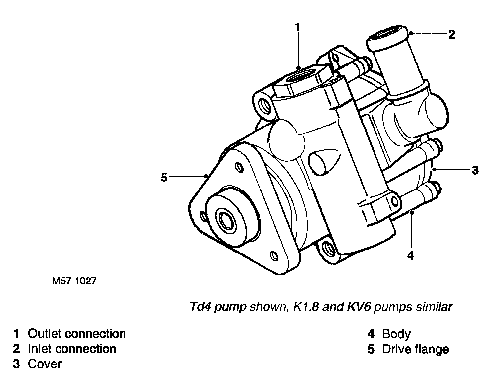 The vane type PAS pump supplies hydraulic pressure to the steering rack valve unit. The PAS pump is driven by a Poly Vee belt from the crankshaft pulley. A self-adjusting tensioner is fitted to maintain the correct belt tension.