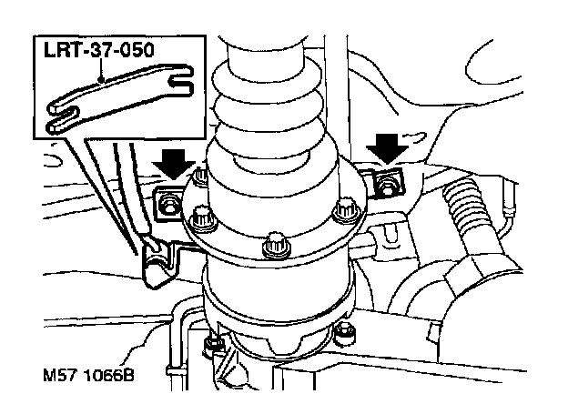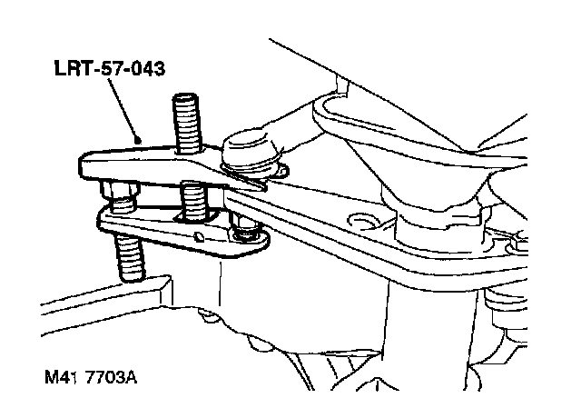 5. Using LRT-57-043, separate ball pins from RH and LH steering arms. Remove M12 nuts and release ball pins from steering arms.