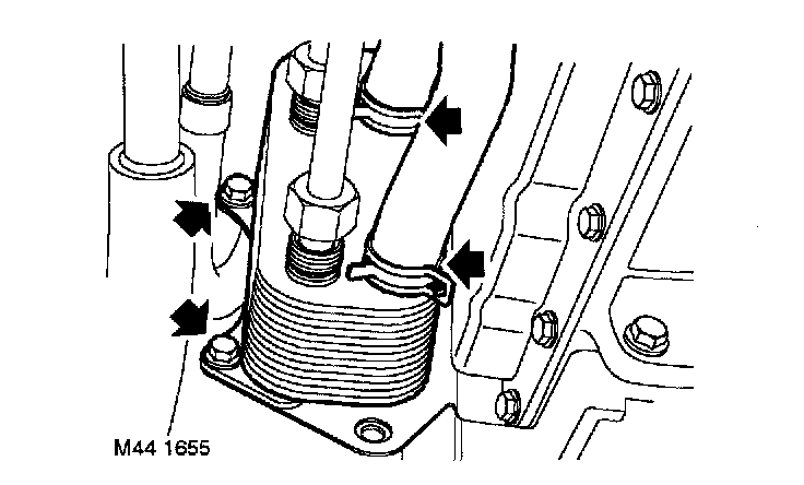 3. Disconnect 2 fluid cooler hose unions and discard 'O' rings.
