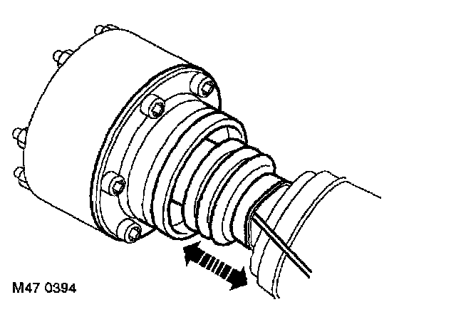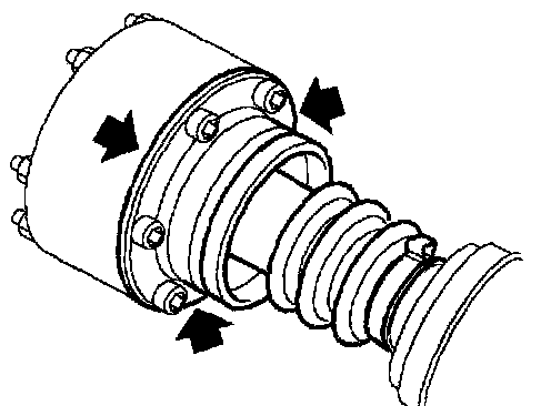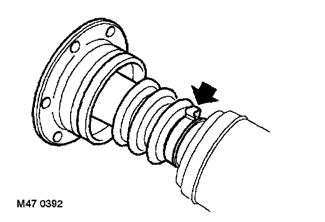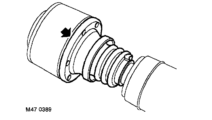 6. Fit shaft to joint body, align gaiter can bolt holes and fit 6 nuts and bolts to seal joint.
