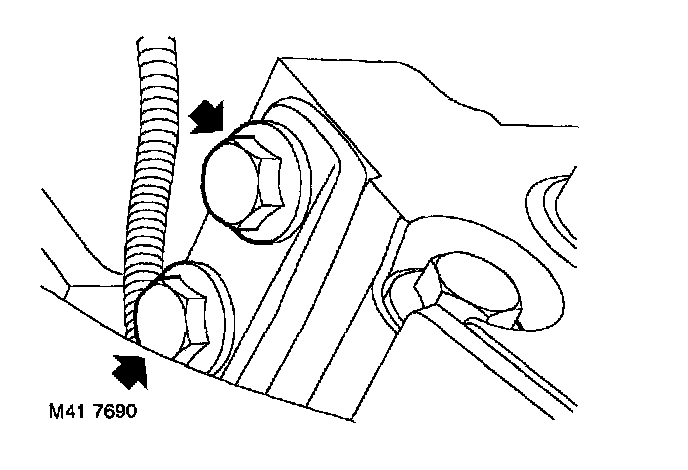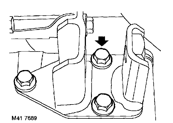 ^ 2 bolts securing support bracket to engine front mounting bracket 50 Nm (37 ft. lbs.)