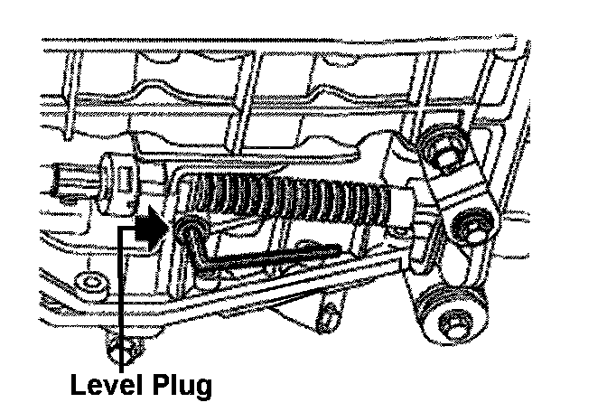 Because of the similarity to other plugs and fasteners on the transmission, the potential for loosening an incorrect fastener, instead of the level plug, exists. There is a risk for internal transmission damage if the improper fastener is removed.