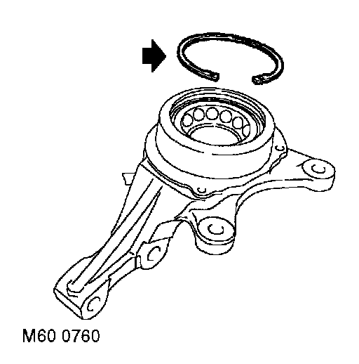 NOTE: From 2002MY the groove in the inner track was deleted. To remove the inner track, clamp the separator around the bearing inner track surface.