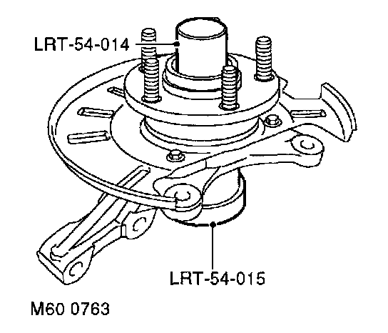 23. Position hub to press and press out bearing using tool LRT-54-015 and LRT-54-017, discard bearing.