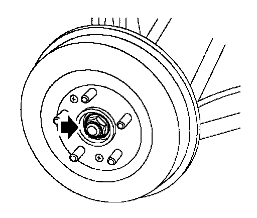 3. With assistant depressing the brake pedal, remove and discard drive shaft nut.