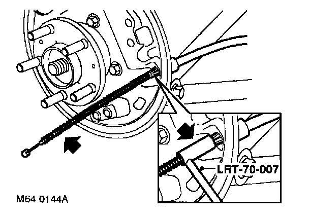 5. Using LRT-70-007 release handbrake cable from backplate and remove from backplate.