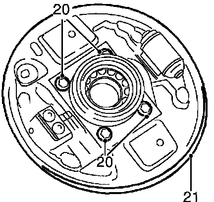 19. Fit hub to vice and remove 4 bolts securing backplate to hub.