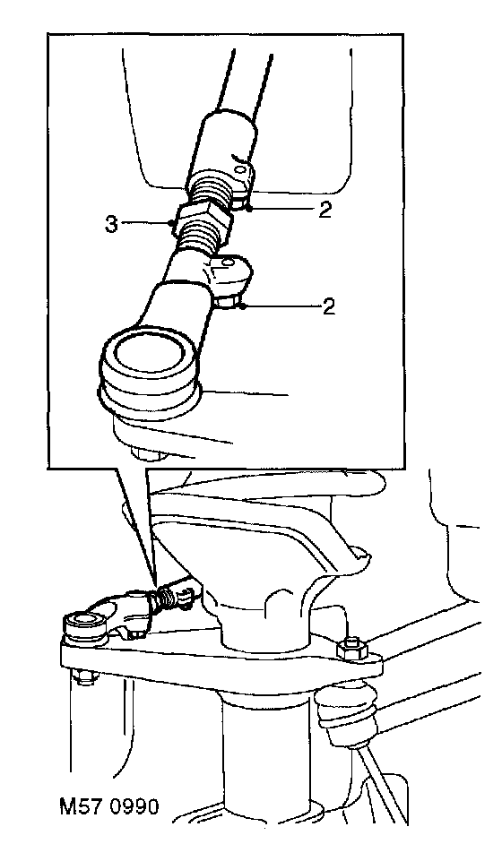 2. Loosen track rod and ball joint pinch bolts.