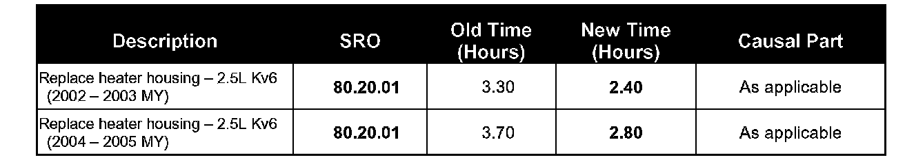 Superseded labor times for SRO 80.20.01 - "Replace heater housing" are as follows: