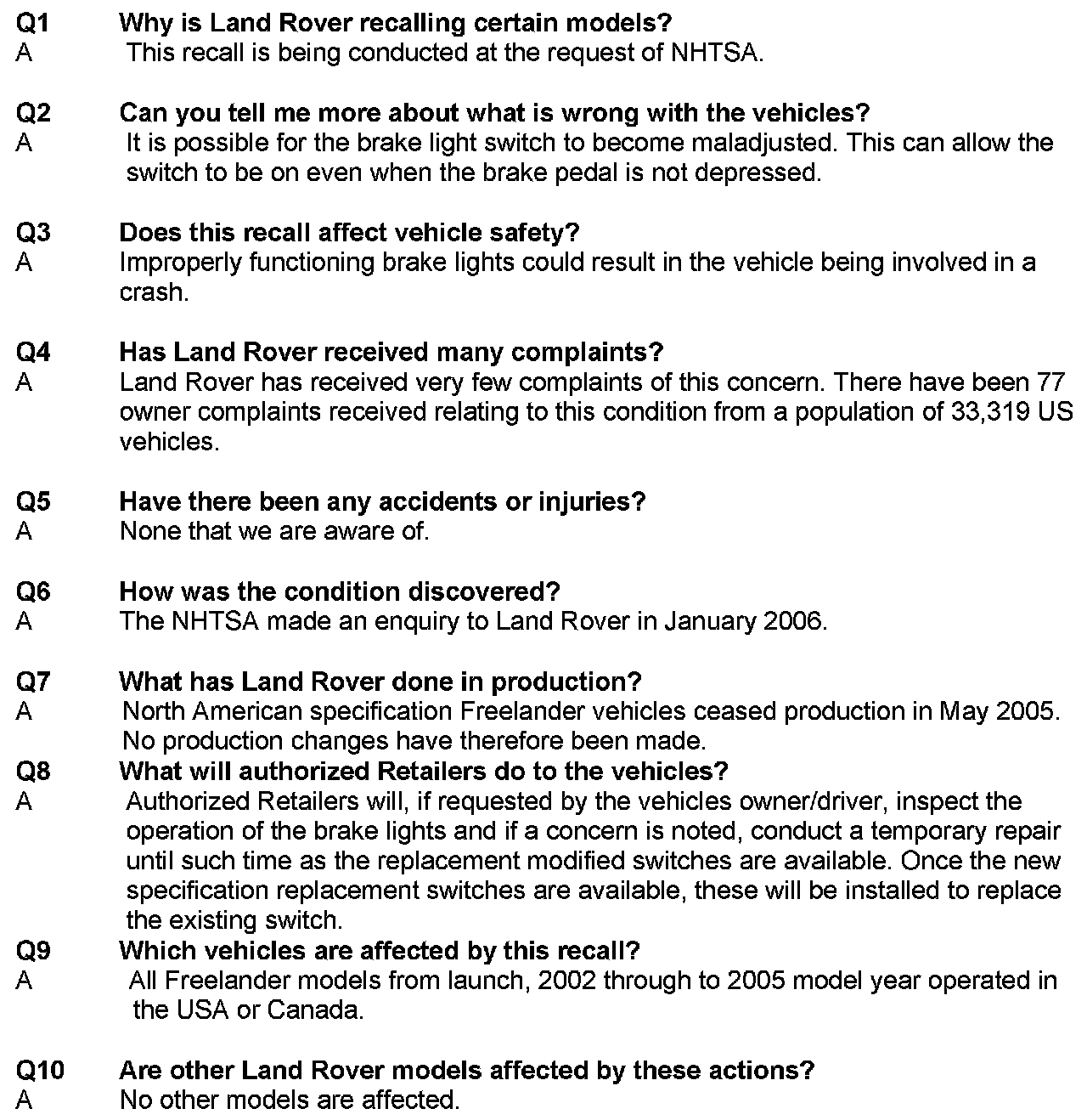 Recall P002 - Brake Light Switch Replacement
