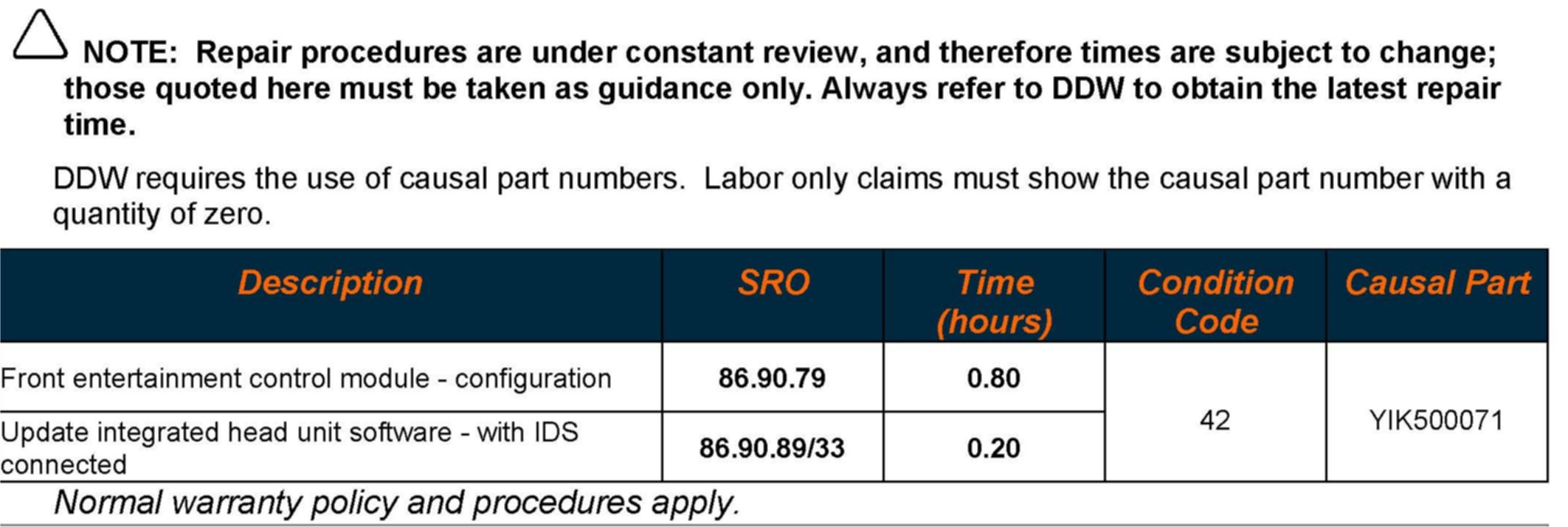 AFFECTED VEHICLE RANGE